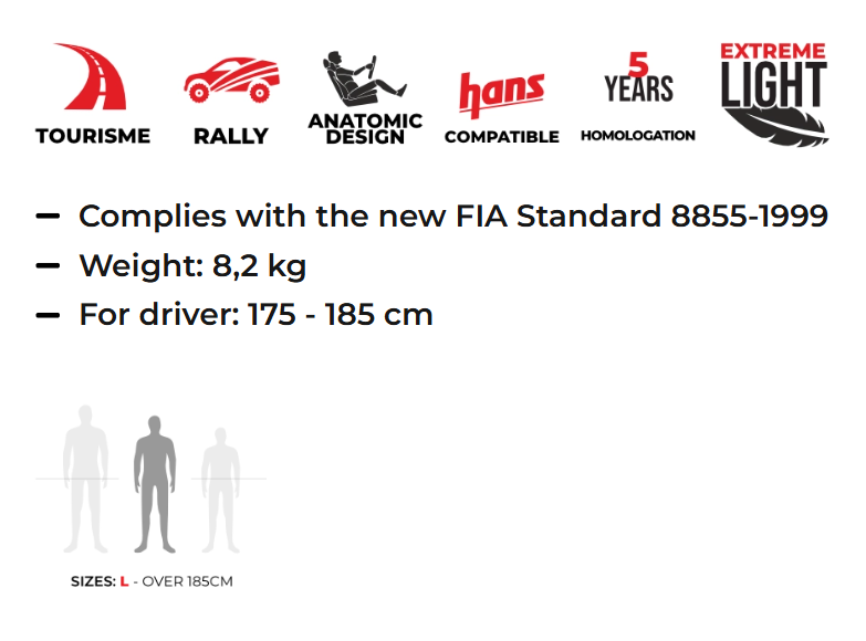 Seat born the profile is taken to the extreme form to be placed in very limited cockpits, suitable for rider up to 180cm.