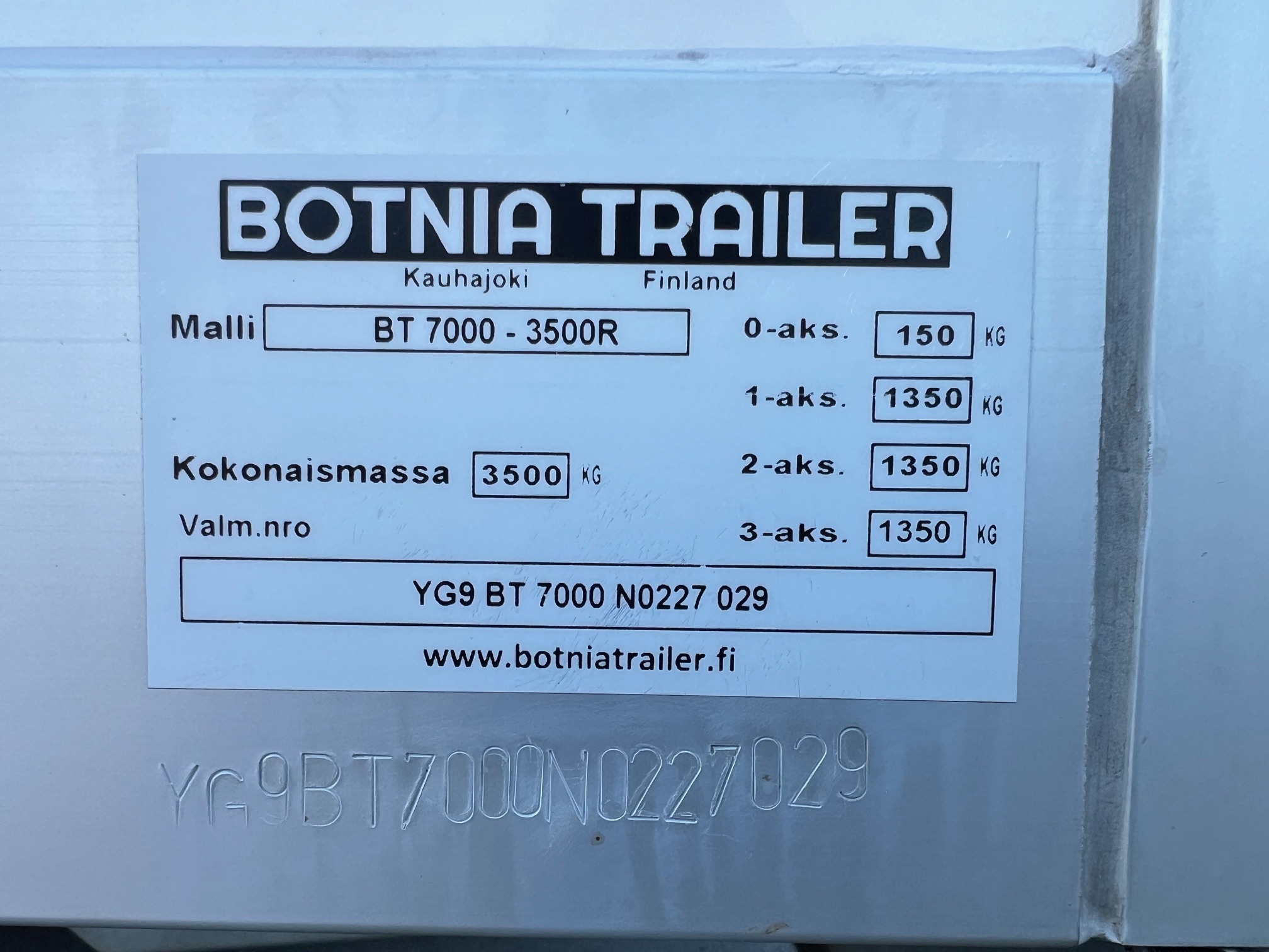 Täismass 3500kg